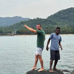 Nach der Grenze fahren wir in Richtung Freetown, die Straßen sind direkt viel besser und wir kommen somit zügig voran. Ganz bis Freetown schaffen wir es nicht, also suchen wir uns mal wieder in einer unserer Apps für Schlafplätze ein Platz etwas abseits der Straße raus.