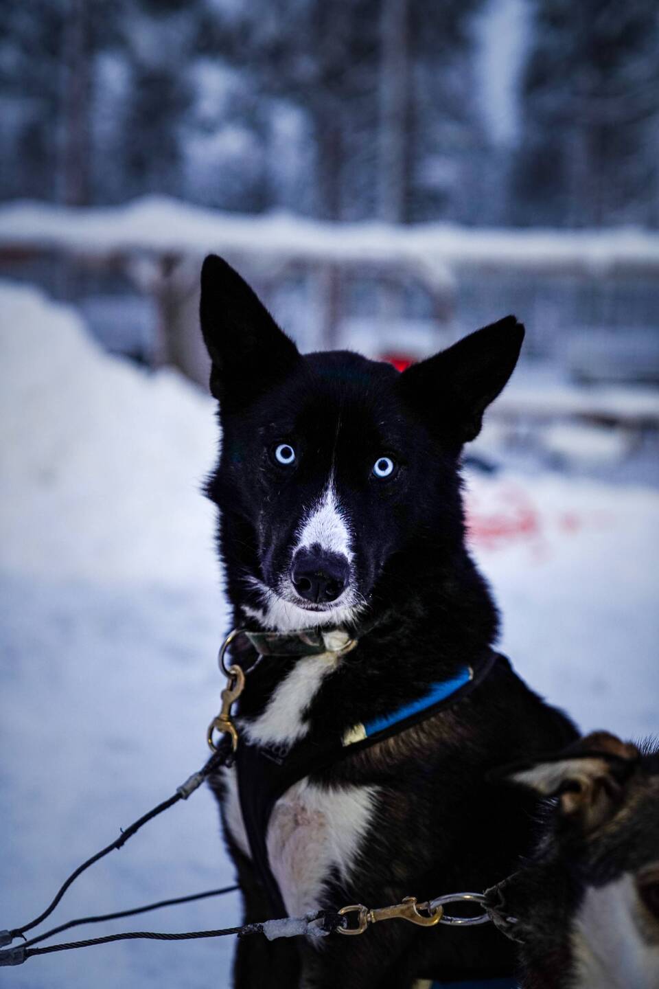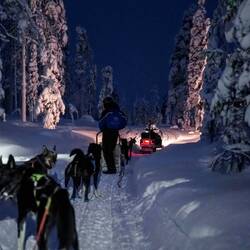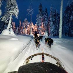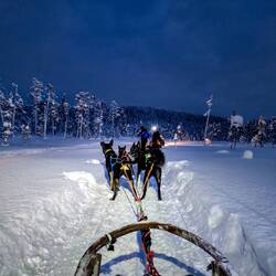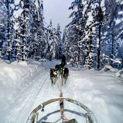 Ab mit den Huskys und einem Schlitten durch die verschneite Landschaft.