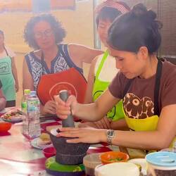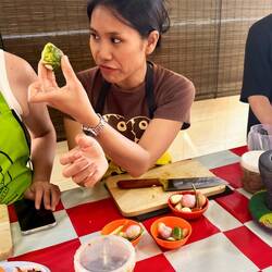 Five gold stars to the best cooking school in Chiang Mai- Yummy Tasty Thai Cooking School. Our guide and teacher, Sky, was brilliant -funny, fast and professional. Everyone of the ten students in ourLäs mer