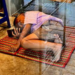 The joys of cattle class! I think the seats are getting smaller, and the legroom less on international flights. An eight hour first leg plus an eight hour wait before we hfly out to change Mai .Läs mer