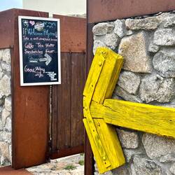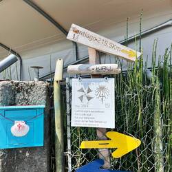 Sometimes it can be a bit confusing how far you have to go to get to Santiago. All these signs seen today, scratching my head a bit!