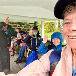 Walked and talked with Damien for 20km. I think he might have had a map, but he certainly had a brolly! A goodRead more