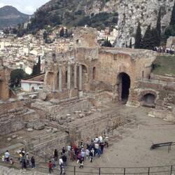 Da der Kongress erst am übernächsten Tag beginnt, können wir heute Taormina und seine Umgebung zu Fuß und Bus erkunden, wie z.B. die Ruine Castel Mola.
