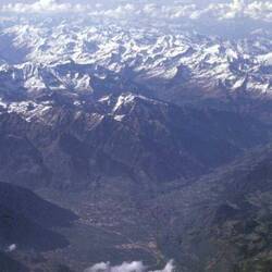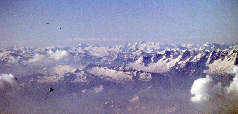 Auf dem Heimflug haben wir einen wunderschönen Blick auf die (noch) schneebedeckten Alpen.