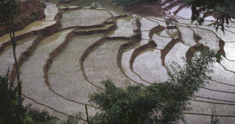 In der Früh geht es weiter, vorbei an Reisfelden und Teeplantagen.
