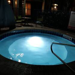 Mit dem Mietauto geht es zuerst einmal zu unserem Hotel "Double Tree by Hilton by Seaworld". Da es hier heiß ist, nützen wir das Hotelpool zum Entspannen.