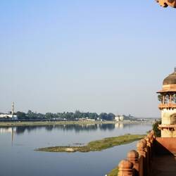 Zudem gibt es in Agra das sogenannte Baby Taj Mahal, das Itimad-Ud-Daulah Tomb. Ebenfalls ein sehr schönes Mausoleum, was einige Jahre vor dem Taj von der Tante von Mumtaz Mahal für ihren persischen Vater erbaut wurde. Das Grabmonument, direkt am Fluss gelegen umgebenen vom Garten, erinnert eher an einen schönen Palastbau.