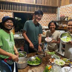 យើងបានចម្អិន និងញ៉ាំអាហារជុំគ្នាប្រកបដោយភាពសប្បាយរីករាយ។ នេះជាទីតាំងកសិដ្ឋាន និងហាងភីហ្សា เต่าทอง The Beetle Pizza & Farm Cafe របស់ពួកគាត់នៅលើ Google Maps៖ https://maps.app.goo.gl/fBmKUShowfEmbtZ27