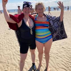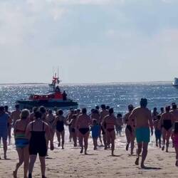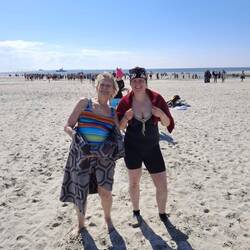 Am DLRG Vereinsheim Middelhusche starten heute etwa 300 Menschen zusammen ins Meer. Da ich für alle extremen Sachen ein faible habe, versuche ich mit einer Kollegin aus der Klinik mit zu machen.
