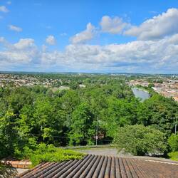 Bin heute ins Städtchen, ganz anders als Bourges. Dort Fachwerk - hier schmale Gässchen von Häusern gesäumt. Oben auf einer Anhöhe mit weitem Ausblick.