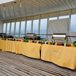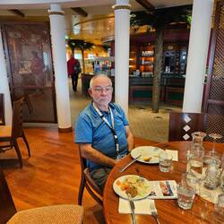 Haben gut gegessen, 5000 Schritte übers Deck absolviert.