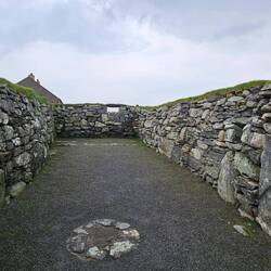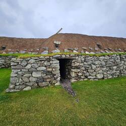 Vom neuen Hafen, extra von Stornoway angelegt für Kreuzfahrtschiffe = starteten wir unseren Ausflug zum Arnold Black House und zum Shieling, dem sogenannten Sommerhaus der Familien, worin die Frauen,Läs mer