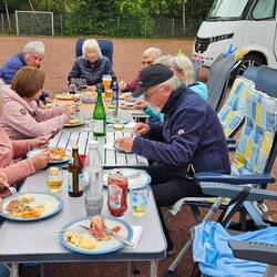 Nach dem Frühstück, Klaus hat Brötchen geholt, haben wir den Schlüssel für die Halle abgeholt.