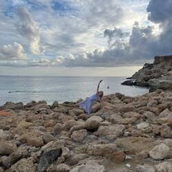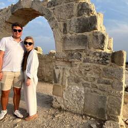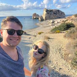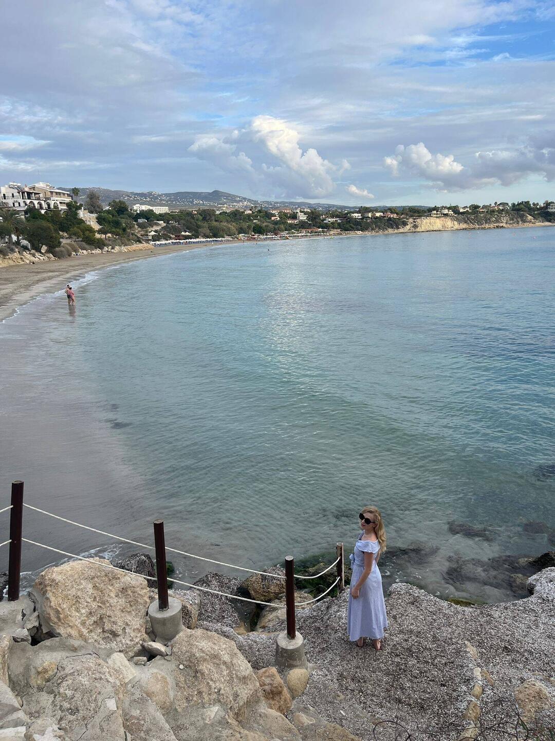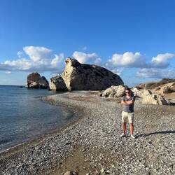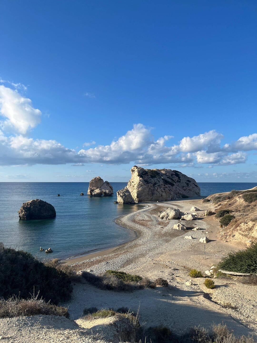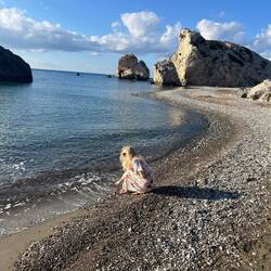 Skała Afrodyty to prawdopodobnie turystyczna, komercyjna bujda, ale sama plaża ma swój klimat. Dla bezpieczeństwa zanurzyliśmy palce w wodzie, żeby nie kusić losu 😂