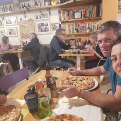 Mit der Fähre wieder aufs Festland. Wegen Sturmwarnung früher als geplant. Am Abend haben wir lecker Pizza gegessen