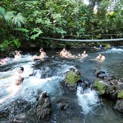 Am ersten Tag sind wir direkt im Nationalpark „Volcan Arenal“ durch den Regenwald gewandert und sind am Ende auf den alten Lavaströmen zu einem Aussichtpunkt gelaufen. Leider war der „El Arenal“ am Tag unserer Wanderung laut den Tourguides „on vacation“, sodass die nahen Wolken uns ein wenig die Sicht genommen haben 🌫. Trotzdem eine coole Wanderung über Lavafelder und Geröll 🐾🪨 Der Vulkan ist zwar seit 2010 inaktiv, wenn man genau hinschaut sieht man dennoch trotzdem ein wenig Rauch hinauskommen💨 Nach der Wanderung konnten wir noch in den Hot Springs „Tabacon“ entspannen 💆🏼♀️ Durch den Vulkan hatte das Wasser angenehme 25 Grad, sodass wir hier den ganzen Nachmittag verbringen konnten 😍