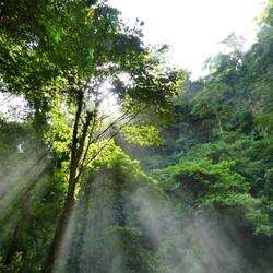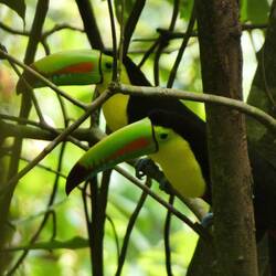Da wir von dem Regenwald scheinbar nicht genug bekommen konnten, haben wir uns am nächsten Tag für eine Wanderung durch den Nebelwald entschieden. Dort haben wir auch gleich den „Quetzal“, einen heiligen Indigenovogel gesehen, was scheinbar eine extrem seltene Angelegenheit ist, wie wir später von unserem Hotelbesitzer erfahren haben. Das erklärt natürlich die Menge behind the scenes! Allerdings war es dann das dann leider auch, denn das allseits beworbende Wild Life des Parks ist scheinbar doch nicht so fotogen wie versprochen… Die Hängebrücke und Urwaldriesen sind natürlich trotzdem immer wieder eindrucksvoll.