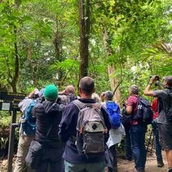 Nach Monteverde ging es mit einem Shuttle über den Lago Arenal und einem alten Klapperbus, der von Señor Tony genutzt wurde um seine neue Bestzeit auf dem Offraftrack hinzulegen 👨🏽💼🚐. Hier war es aufgrund der Höhe gleich ein paar Grad kälter, was daran lag, dass die grünen Berge (Monteverde) die Wolken berühren 🌲🏔️☁️. Am ersten Abend ging es direkt auf einen Dschungel-Night-Walk, auf dem wir neben verschiedenen Regenwaldbewohnern wie Fröschen, Vogelspinnen und Leaveinsects auch das Wasser der Wolken hautnah spüren durften 🦎🦗🕷️🐸.