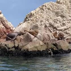 Sand, Sand und noch mehr Sand. Bienvenidos en Paracas, einem Ort mitten in der Wüste in Peru. Ein völlig andere Welt und seit den letzen 23 Jahren ohne einen Tropfen Regen. Eingebucht haben wir uns in eine kleine Oase mit Pool, die allerdings auch schon etwas in die Jahre gekommen ist, mit trockenen Brötchen und Marmelade als Frühstück inklusive und hunderten von Fliegen im Zimmer mehr verspricht als sie bietet, aber ausreichend war ✌🏻😂. Dennoch lohnt sich ein Stop in diesem Wüstendorf, wie wir auf einer Rollertour durch das Wüstenreserverad oder einem Bootsausflug zu den Islas Ballestas feststellen konnten ☺️. Mit dem Roller ging es durch die Wüsten an schönen Küstenstraßen entlang, Highlight waren definitiv die vielen Vögel und eine Robbe, die uns am Strand besucht hat 🦭🦅 Auch wenn der Tacho, Blinker und Licht nach peruanischen Standard natürlich nicht funktionieren, hat der Roller beste Arbeit als Off-road-Begleiter geleistet 🛵💥 Mit dem Boot ging es dann zu den Islas Ballestras, die den Gallapagos-Inseln ähneln. Definitiv ein Paradies für Seehunde, Pinguine, Pelikane und ziemlich viele Vögel! Auf der Tour wurden wir dann sogar von Delfinen begleitet 😍🌊 Ebenso kann man hier vom Meer aus ein Kunstwerk der Inkavölker sehen, den „Kerzenständer“ oder auch „Kaktus“. Dieser zählt zu den berühmten Nascalinien, warum das Zeichen vor vielen Hunderten von Jahren in den Stein geritzt wurde, bleibt bisher ein Geheimnis der Inkavölker 🏜️