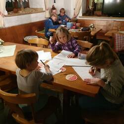 Es regnet schon die ganze Nacht. Wir wissen nicht, was wir machen sollen. Fahren nicht fahren, nach Hause? Erstmal Sekt. Um 11 Uhr bin ich etwas beduselt und der Tisch sieht wild aus: Spielzeug, Sekt,Leia mais
