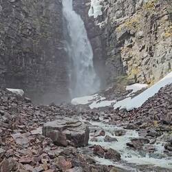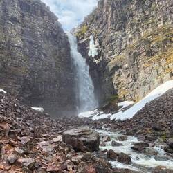 Der mit 125 Metern höchste Wasserfall Schwedens