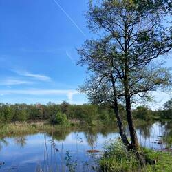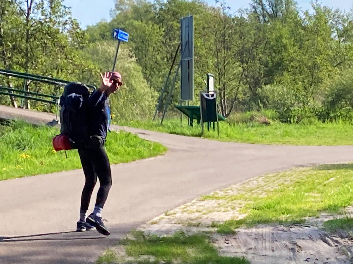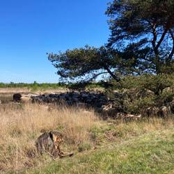 Mijn horloge geeft aan dat ik een goede nachtrust heb gehad, maar zelf heb ik dat toch anders ervaren. Boeren waren tot laat aan het werk op het land, dus reden voorbij, ik had het koud, dus weer rommelen om wat warms aan te trekken en pijn in mijn hand die knak zei tijdens dat gerommel in dat kleine fijne tentje. Maar er is koffie op de camping, waar tijd voor is als de tent hangt te drogen in de zon. Om 10.10 uur vertrek ik, het is warm, maar durf met benen die nog geen zon gezien hebben niet te wandelen in een korte broek. Ik zou aan het smeren blijven. Eerst naar Olderberkoop, waar ook een supermarktje is om wat te halen voor onderweg. Het zijn lange rechte 60km wegen er naartoe met aan het begin een klein uitstapje rond een meertje. Het is vol in de zon. In het Koepelbos vlak onder Olderberkoop neem ik even pauze op een bankje in de schaduw. Ik zit er al even en dan zie ik naast het ooievaarsnest een reiger op haar nest zitten! Door Olderberkoop en dan weer een lange rechte weg in de zon. Maar dan een prachtig stuk de Dellaboersterheide die ik bereik via een zandpad. Het is er heel mooi en ik kom een schaapskudde tegen die met een heleboel lammetjes verkoeling zoekt onder een boom. Iets verder op het pad tref ik drie oudere mannen, we maken een praatje. Een van hen heeft meegewerkt aan de tot stand koming van het Stellingenpad. Hoe leuk! Nee g een mooi stuk: Diakonievene, met een pingoruine. Dan wordt het pittig, warm en geen bankjes in de schaduw. Ik moet ca. 5km langs de Tsjonger lopen. Ik schat dat de kans op een bankje aan de oever met het fietspad groter is, dus ik kies die kant. Mijn voorspelling klopt, maar vol in de zon. Toch even kort pauze. Verder is het even verstand op nul en doorlopen. Aan het einde een bankje in de schaduw. Het is nog 1,5km naar de camping maar ik moet even uit de zon. Er komt een man naast me zitten met zijn hond en we hebben een gelijkgestemd gesprek over wolven. Gezellig. Ik neem afscheid en loop door naar de camping. De supermarkt is 2,5km verderop, maar ik mag de fiets van de eigenaresse even lenen om boodschappen te doen, super fijn! Mijn tentje opgezet in de schaduw, ik kan even niet zoveel zon meer aan. Er staan verder maar twee caravans op de camping, die gasten zijn nu weg, dus zit is me and the chickies! De witte kip wilde al gezellig mee naar de wc.Læs mere