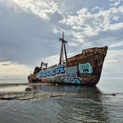 Heute war ein sehr ereignisreicher Tag. Der erste Halt war beim Dimitios Schiffswrack welches 1981 dort angespült wurde und seit da am strand liegt.
