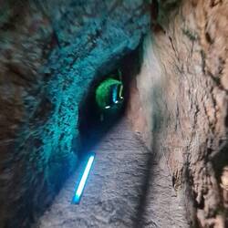 Durch zwei Fußgängertunnels kommt man an Sa Calobra Beach ein kleiner Strand zwischen den Felsen