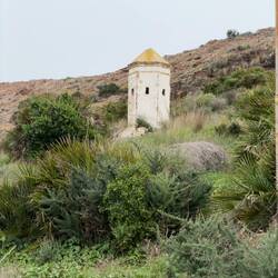 Alter Wachtturm aus dem 16.Jahrhundert im Naturpark Salinen von Santa Pola …