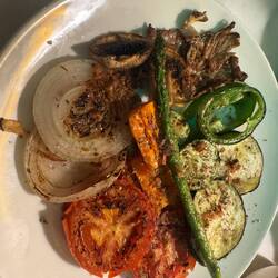 (Mein Paradies; Fisch des Tages grilliert mit Gemüse)