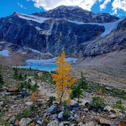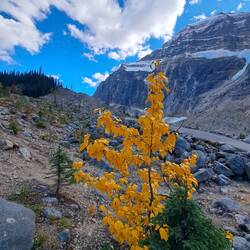 Herrliche Anreise über den Icefields Parkway. Kurzer Abstecher zum Athabasca Gletscher und den Peyto Lake.