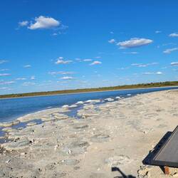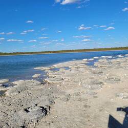 To Lancelin and did som e shopping. Then drive to thus camp, drive around town. To LA k e Thetis and saw The Stromatolites. Watched sunset from the foreshore. Ran out of gas,(8 nights).