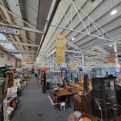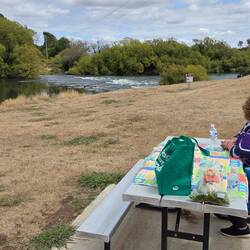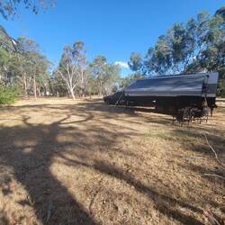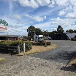 Free camp. Left Trentham and traveled to Ballan, called in at The Zest Cafe to see Ros. There for about 3 hrs, had lunch wit Rosie before moving on to Meredith. Setup and went for a drive, very smallLæs mere