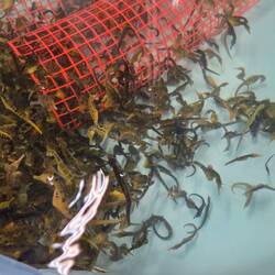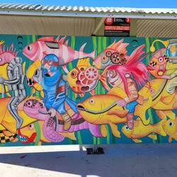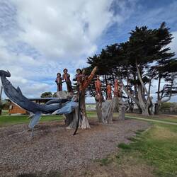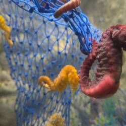 $10/n. Did a couple of loads of washing. Very windy, MTied toilet into Jerry can and split it. Taped up and took to DP in Beaconsfield. Fish and chips at Beauty Point then on to Seahorse world.