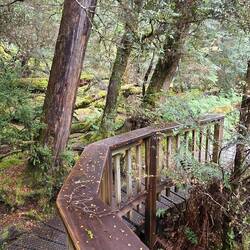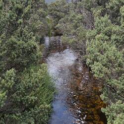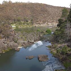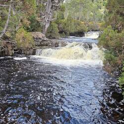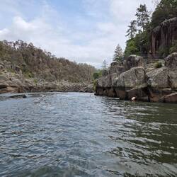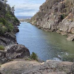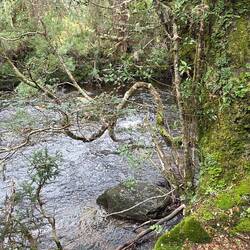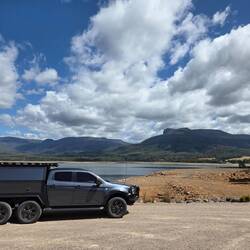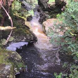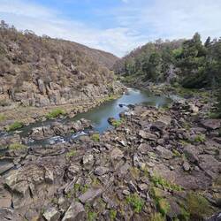 Free camp. Drive around mountains, headed to Liffery falls along a very narrow road. On arrival looked at track and decided thongs weren't the best footwear. Left and drove through Meander to HuntsmanLæs mere