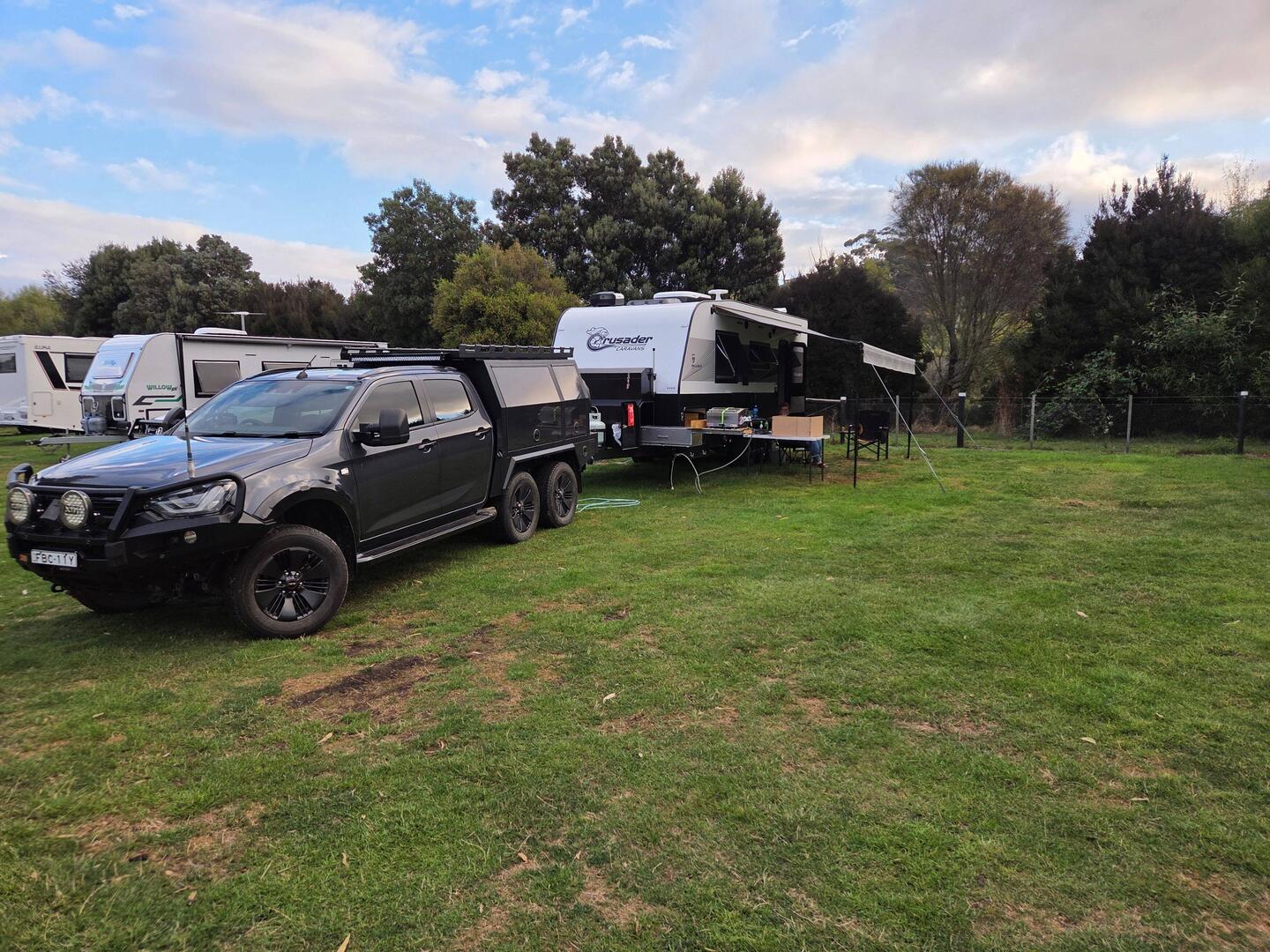 $7 / n. Disembarked SOT and headed to Railton. A bit early to check into the CMCA park, so pulledup at football ground for coffee and toast. Around 8:30, we checked in at CMCA camp. Drove back intoLæs mere