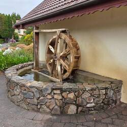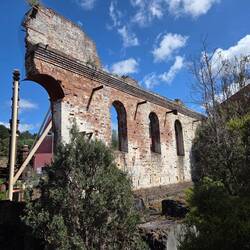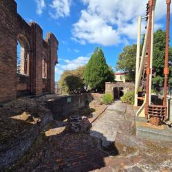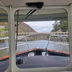 Drive up and down the Tamar river. Called in at the Grindelwald Swiss resort for a coffee. A 400m walk to the Supply river mill ruins. Stopped at Beaconsfield for an IGA p I eLæs mere