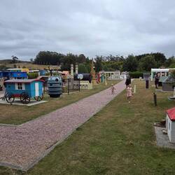 Free camp. Emptied toilet. To Pearns Steam world to check out all the farm equipment. Drive to Deloraine to checkout a few shops. Lunch at the rail park. Then out to Chudleigh, bought a facocia breadLæs mere