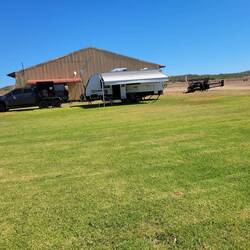 Set up at Rec Park free camp, has toilet, shower, water and dump point. To pub for dinner, I had the Tee bone special for $15, Leanne a Schnity. A few loads of washing in the morning before we left.Read more