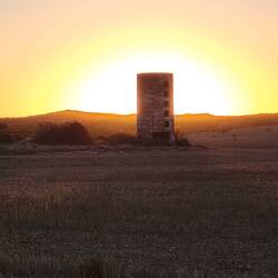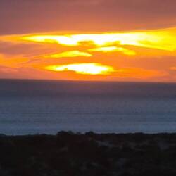 To Lancelin and did som e shopping. Then drive to thus camp, drive around town. To LA k e Thetis and saw The Stromatolites. Watched sunset from the foreshore. Ran out of gas,(8 nights).