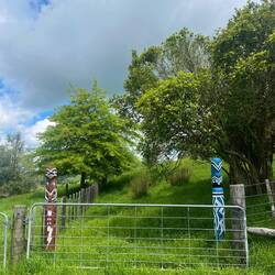 The trail/road we were supposed to take when leaving Te Kūiti followed a river, among other things. But since it had rained a lot, the river had overflowed, and our kind trail host drove us to the start of the Timber Trail instead — a 40 minute drive. We struggled a bit to fit all our bags into the car, but we made it!Leggi altro