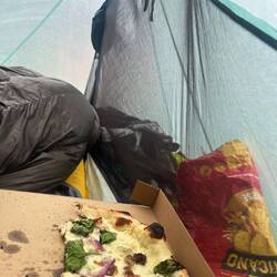 In the morning, I woke up to a beautiful sunrise and enjoyed a slow morning with hot cocoa. Afterwards, I continued to the next campsite, where unfortunately there was no view, as it was in the middle of the forest.