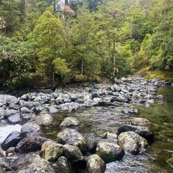 After that, we continued along a long gravel road, walking beside a river and then into the forest, before arriving at Captain Creek Hut. This is the first of many huts I will be staying in here on the South Island. Later on, two Danes showed up who are hiking the South Island from south to north, the opposite direction of us. They had the largest backpacks we have seen on the trail so far, weighing over 25 kg! We were able to tell them that a hot shower and a small food and drink cart awaited them the next day, which was clearly very welcome news.Leggi altro