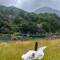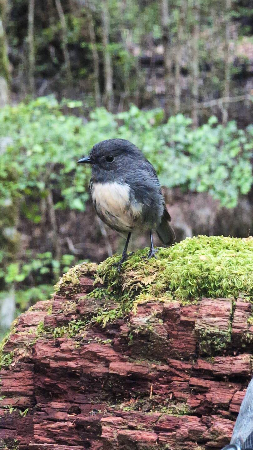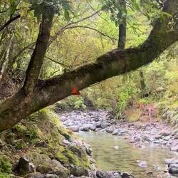 The day turned out to be more challenging than we had expected, and you really had to concentrate throughout the day to stay on the trail. The path consisted mainly of very narrow tracks along steep slopes, tree roots, and many river crossings. At one point, when we took a break, a small, cute bird came and took a break with us as well.