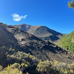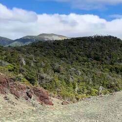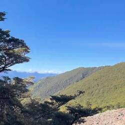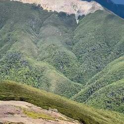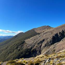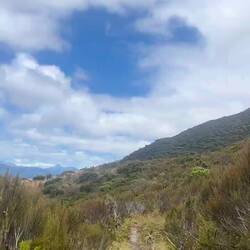 We started by climbing above the treetops, after which the first major ascent awaited us. In the first photo, you can see the mountain behind the hut, which was breakfast. After that, we had a very steep descent, followed by climbing the next mountain for lunch, which was also the highest point we would pass on the Richmond Track.