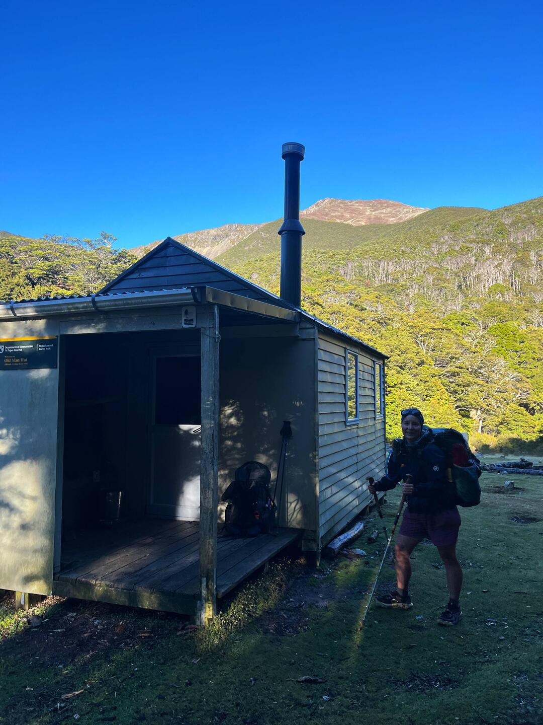 Derefter fortsatte vi langs en lang grusvej for at gå langs en flod og videre ind i en skov, inden vi ankom til hytten Captain Creek. Dette er den første ud af mange hytter, som jeg kommer til at overnatte i her på Sydøen. Senere dukkede to danskere op, som går Sydøen fra syd mod nord, altså modsat af os. De havde de hidtil største rygsække, vi har set på trailen, og de vejede over 25 kg! Vi kunne fortælle dem, at dagen efter ventede et varmt bad og en lille vogn med mad og drikke, hvilket tydeligvis var gode nyheder!