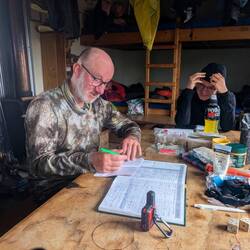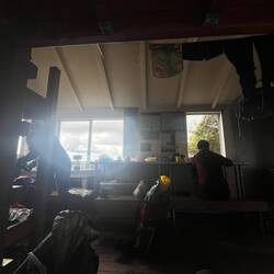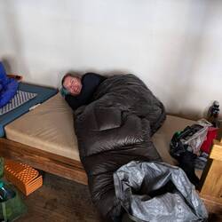 Derudover kom der også regn den sidste 1,5 time af vores tur i dag, så vi var meget glade for at se, at de andre havde varmet hytten op, da vi ankom. Da der kun var plads til seks personer i hytten, sov den ene af os på gulvet.
