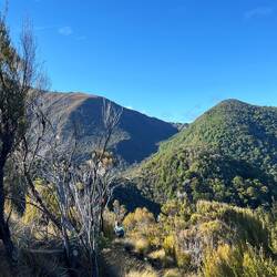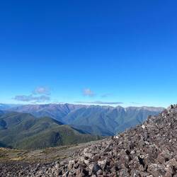 Today was all about reaching the highest mountain on the Richmond Track at an elevation of 1,736 metres. Progress was very, very slow, and in total we covered just 5.5 km in 6.5 hours. The terrain was at times extremely challenging, and a lot of concentration was required on the descents. However, we had perfect weather today, and that made a huge difference.
