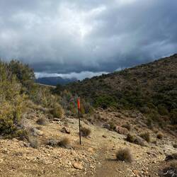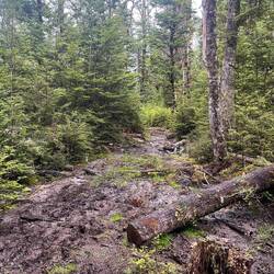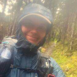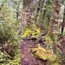 There weren’t many trail markers, as many trees had fallen or been washed away by the rain. The trail hadn’t yet been cleared by anyone with a chainsaw, so moving through it was exhausting and, at times, a complete guessing game as to what might actually be the trail. At the same time, it was raining, but luckily there was no wind - so newly falling trees weren’t a problem!