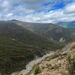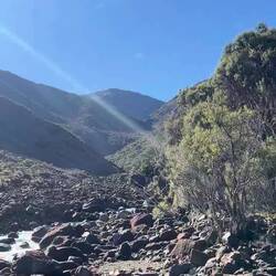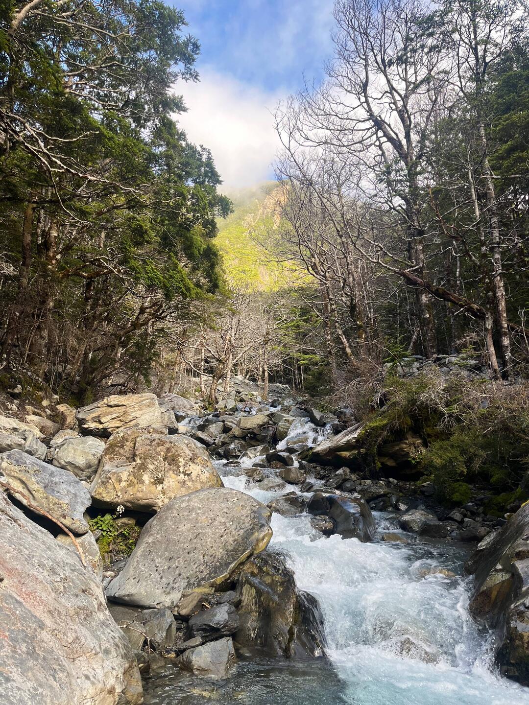 Den første kilometer krydsede vi Hacket Creek utallige gange på kryds og tværs, hvilket gav benene et koldt bad, inden de for alvor skulle arbejde.